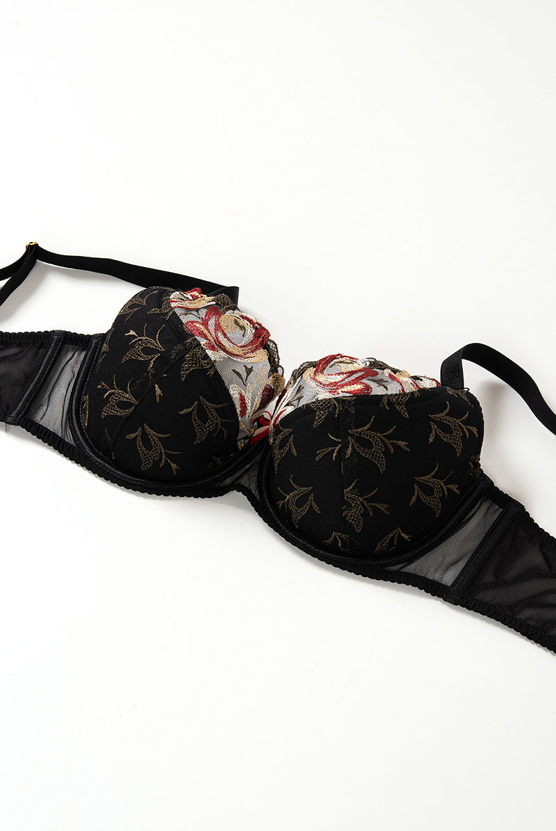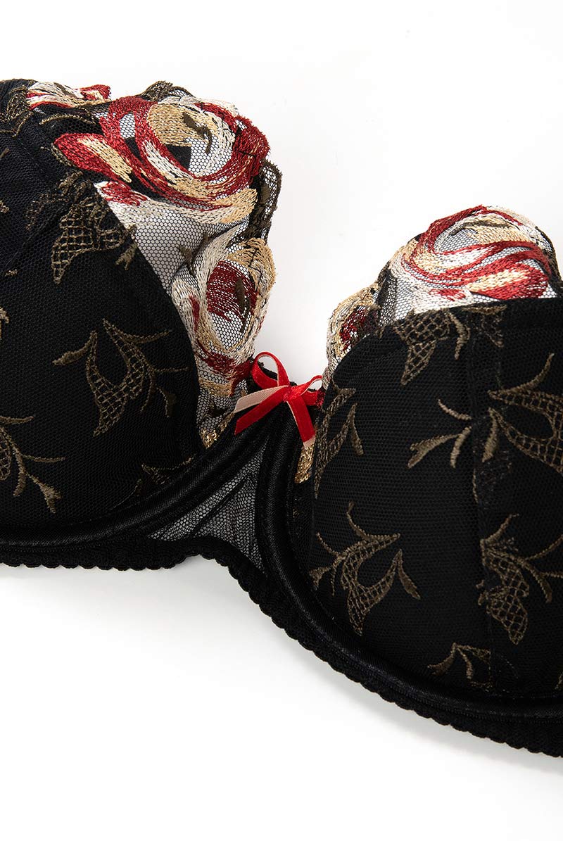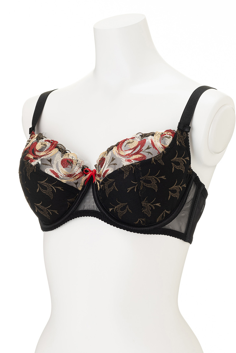 【30%OFF】ROSANA-black-B150 | フルカップ・ワイヤーブラ・セミソフトブラ・大きいサイズ・B〜Kカップ・ブラック・レッド・レース | ewabien エヴァビアン [ROSANA-black-B150]