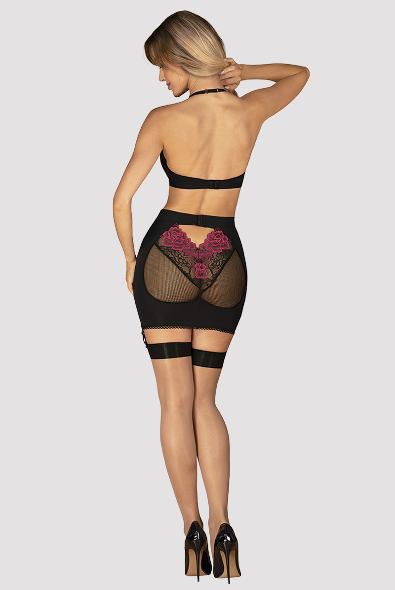 Rosenty top & skirt | ハイネックブラ&ガーターベルト付きスカート 2点セット・ベルト着脱可能 | obsessive 高級Sexyランジェリー [Rosenty-top-skirt]