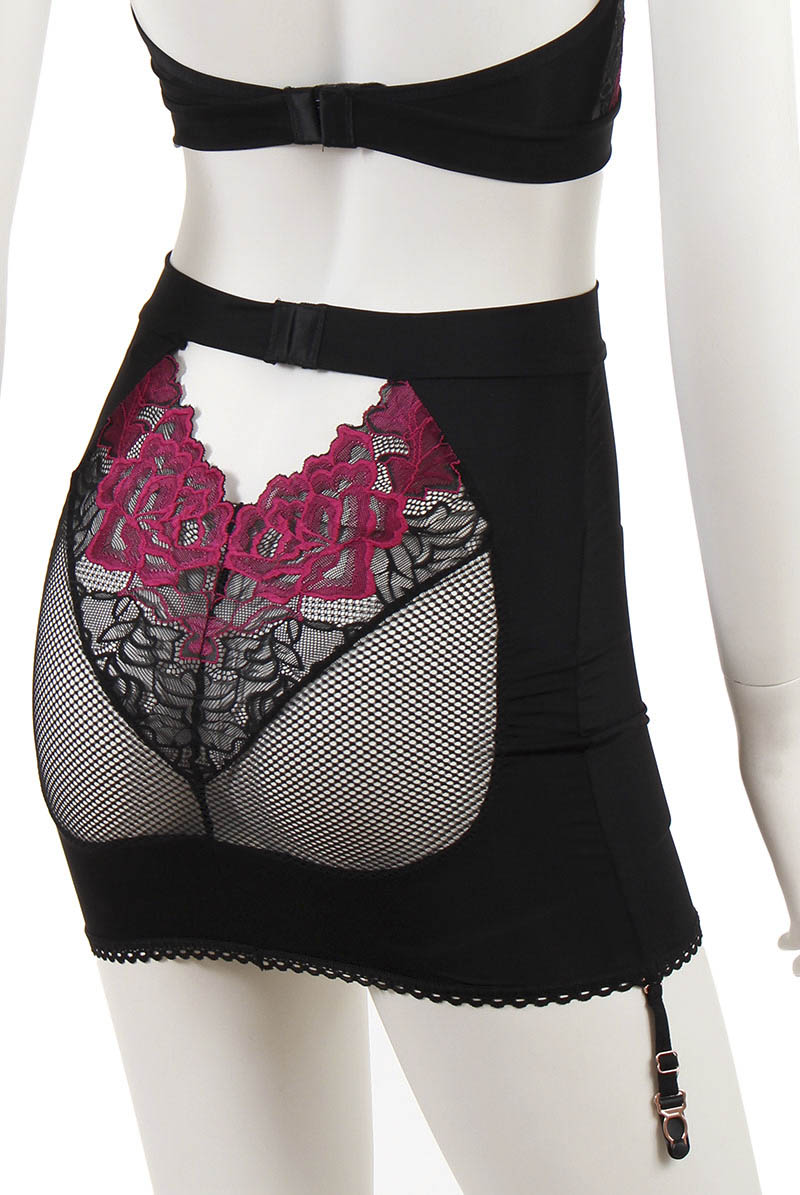 Rosenty corset |ガーターベルト付きコルセット&クロッチレスタンガ2点セット・ブラック×ピンク | obsessive 高級Sexyランジェリー [Rosenty-corset]