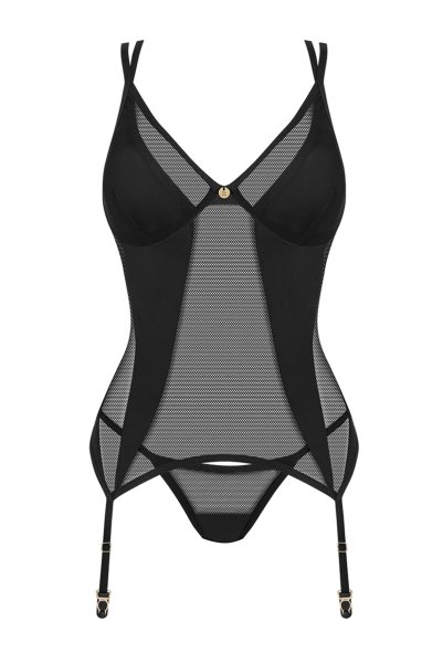 - > Nesari corset | ガーターベルト付きコルセット&タンガ2点セット(ワイヤーあり・シースルー・ダブルストラップ・ブラック) | Obsessive 高級Sexyランジェリー