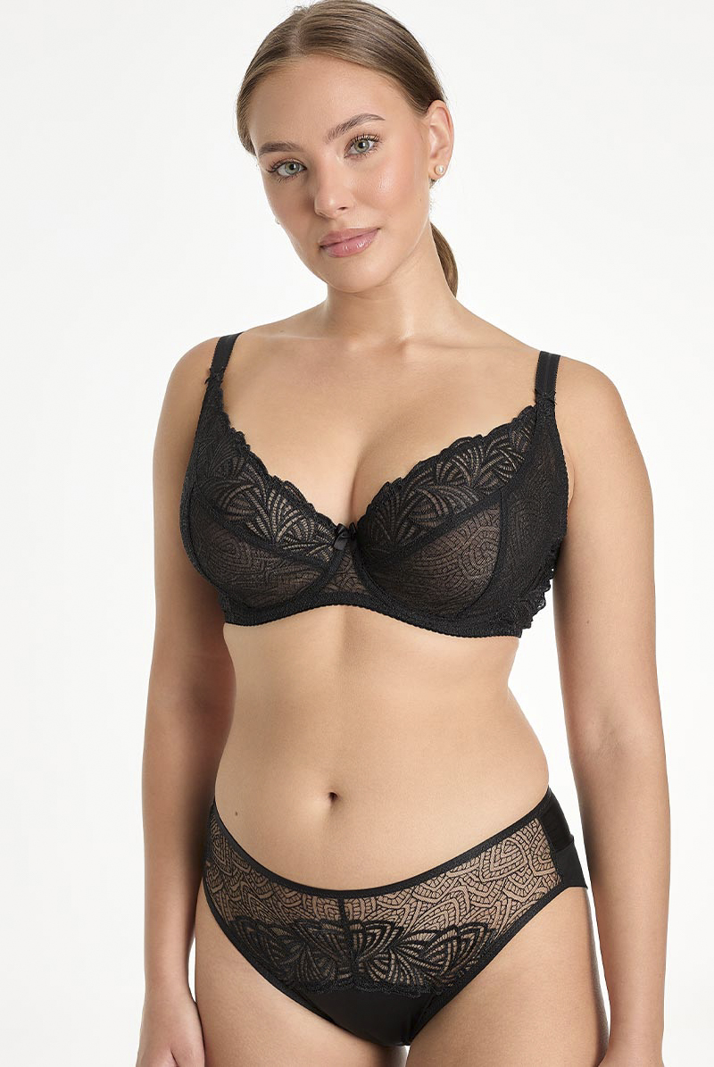 RINA black B161 | フルカップ・パッドなし・ワイヤーブラ・一枚レース・大きいサイズ・B〜Jカップ・ブラック | ewabien エヴァビアン| 輸入下着・高級ランジェリー<e2509-1s> [RINA-black-B161]