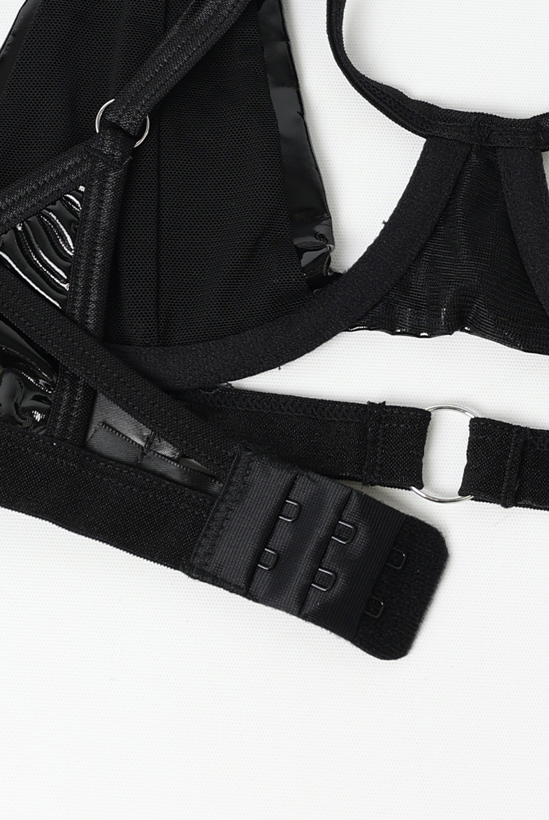 Keira Lise 2-pcs set|ブラ&タンガ2点セット(ワイヤーあり・ボンテージ・フェイクレザー・ブラック) | Obsessive 高級Sexyランジェリー【即日発送・サイズ交換NG・メール便対象】輸入下着・ランジェリー [Keira-Lise-2-pcs-set]