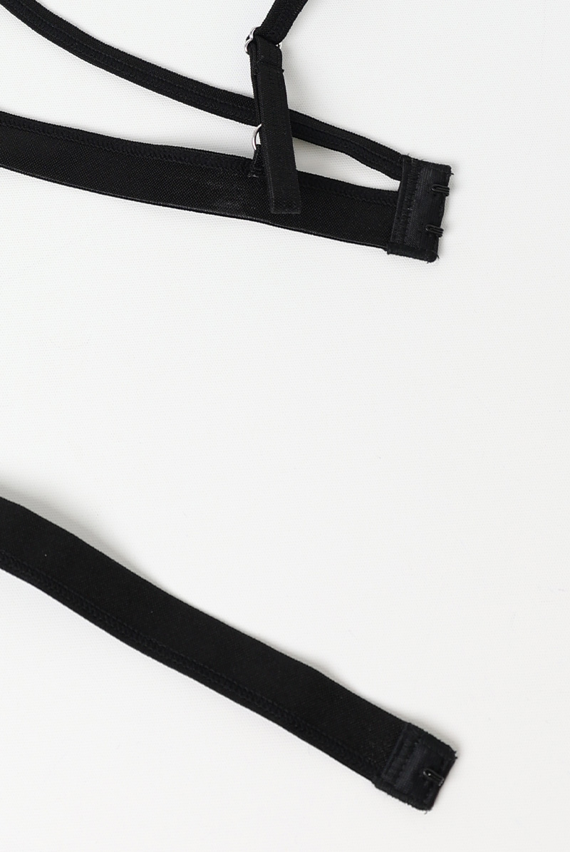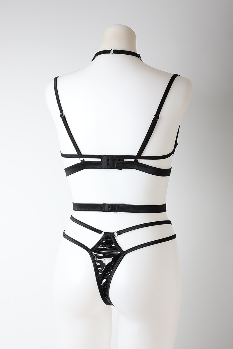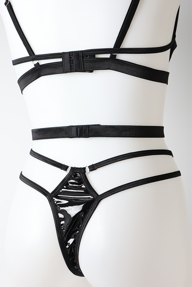 Keira Lise 2-pcs crotchless set|ブラ&クロッチレスタンガ2点セット(ワイヤーなし・オープンバスト・ボンテージ・フェイクレザー・ダブルストラップ・ブラック) | Obsessive 高級Sexyランジェリー【即日発送・サイズ交換NG・メール便対象】輸入下着・ランジェリー <OB5468> [Keira-Lise-2-crl-set]