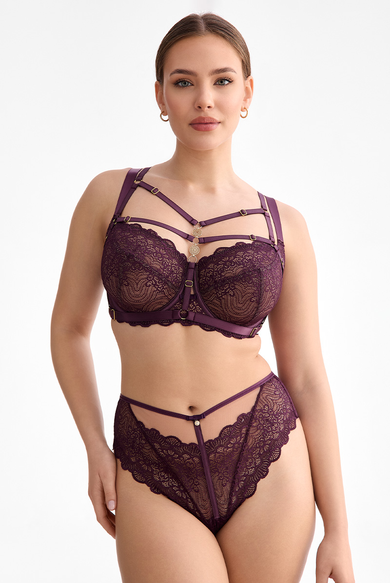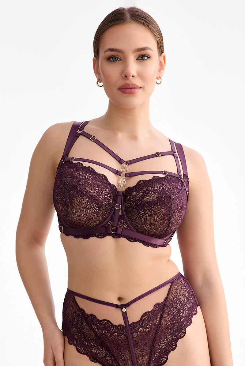 MARIBEL cherry B862 | ブラレット・フルカップ・パッドなし・ワイヤーブラ・一枚レース・大きいサイズ・バイオレット | ewabien エヴァビアン [MARIBEL-cherry-B862]