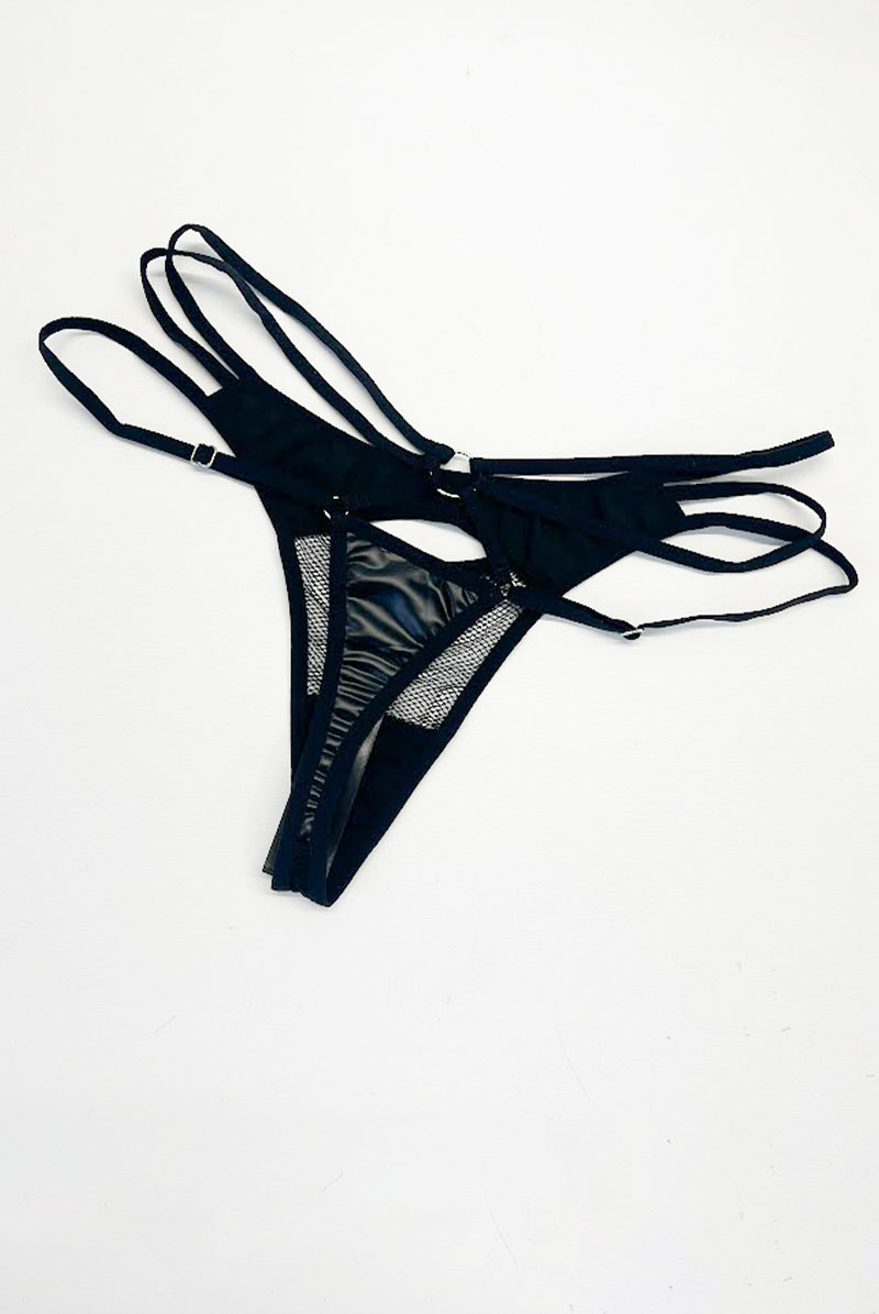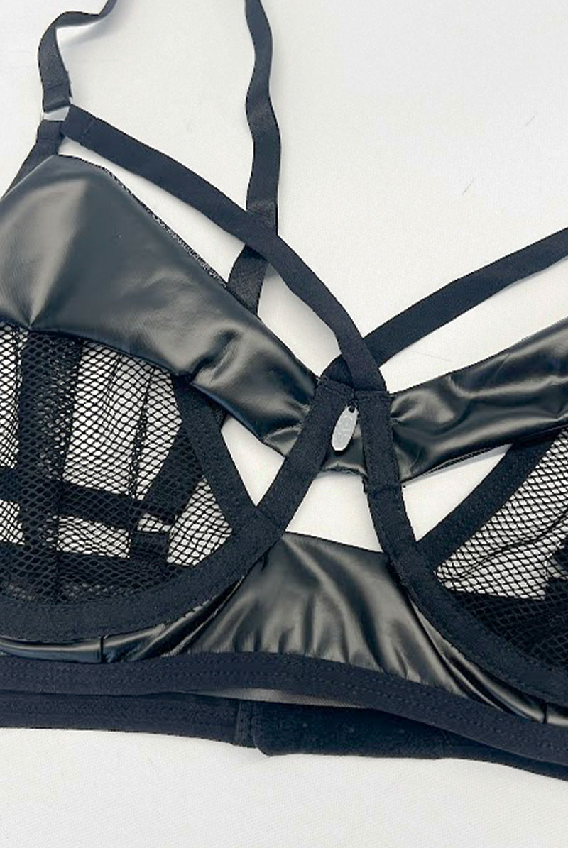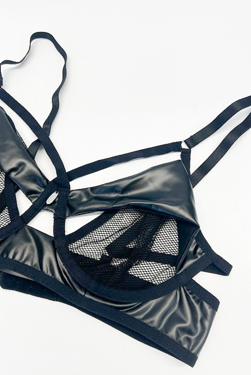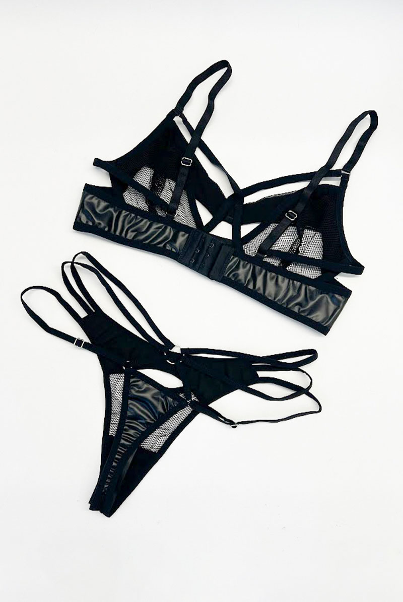 Dominna 2-pcs set|ブラ&タンガ2点セット(ワイヤーあり・ボンテージ・フェイクレザー・ブラック) | Obsessive 高級Sexyランジェリー【即日発送・サイズ交換NG・メール便対象】輸入下着・ランジェリー [Dominna-2-pcs-set]