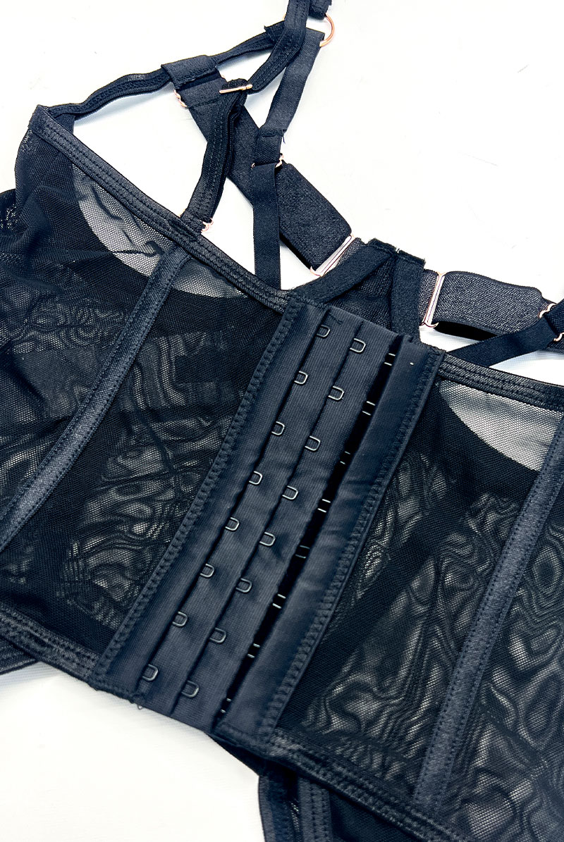 - > Euridia corset| ガーターベルト付きコルセット&タンガ2点セット(ワイヤーあり・ブラック) | 高級Sexyランジェリー Obsessive【即日発送・サイズ交換NG・メール便対象】輸入下着・ランジェリー